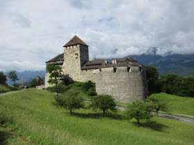 Nun wurden Erinnerungen an den Vaduzer Städtlelauf wach. Es ging rechts den steilen Anstieg hoch, wie dort in den langen Runden. Noch lief es recht locker, Aber es sollte sich nun ganz schön nach oben ziehen, vorbei am fürstlichen Weinberg. Da ging nach jeder Kurve nochmals weiter hoch. Noch konnte ich recht gut laufen, ahnte aber noch nicht, dass dies erst ein Vorgeschmack war. Kann das so lange rauf gehen, bis das Schloss erreicht ist? Endlich wieder eher flach und es lief und so nebenbei wurden neue Bekanntschaften geknüpft. Immer wieder auch der Blick nach rechts unten, wie viel schon geschafft war. Das Schloss tauchte vor uns auf und man lief daran vorbei. Links weg ging es noch ein Stück die Serpentinen der Hauptstraße hoch und Vaduz wurde Richtung Triesenberg verlassen. Es war doch ganz schön warm. Wie können da manche was Langes anziehen? Ich hätte von dem Wenigen noch was ablegen können. Die letzten knapp drei Kilometer hatten schon einige Höhenmeter, aber es sollte nun richtig losgehen. Noch lief ich in gut 6 min den Kilometer. An sch fühlte ich mich gut und das rechte Knie hatte auch den Tempolauf nach Vaduz super gehalten und bergauf ist es eh kein Problem.