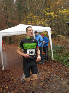 Nun erst mal eine Runde Aufwärmen und da lief ich wieder die 2,5 km lange Runde auf dem Trimmpfad ab. Ich war, als ich heute Morgen aufstand, doch erstaunt, wie ich die beiden harten und auch sehr erfolgreichen Crossläufe gestern in Feuchtwangen verkraftet hatte. Auch nun auf der Runde ging es echt gut. Nach dem Start geht es erst leicht aufwärts und dann tendenziell leicht bergab und danach flach weiter. Die Wege waren natürlich etwas aufgeweicht, insgesamt aber gut zu laufen. Nur am Ende des ersten Abschnitts im Wald etwas mehr matschig. Danach kurz aus dem Wald raus, links weg und dann ein etwas längere, wenn auch nicht so starker Anstieg. Hier leider auch ein sehr unangenehmer Gegenwind. Nun noch durch den Wald und dann am Waldrand entlang. Auf der 10 km-Strecke muss man später in der ersten Runde, damit die Distanz passt, eine Schleife auf dem einzigen asphaltierten Teil absolvieren. Hier auch wieder sehr windig. Nun leicht ansteigend im Wald wieder Richtung Start / Ziel. Nach gut 3 km fühlte ich mich für den Lauf bereit.