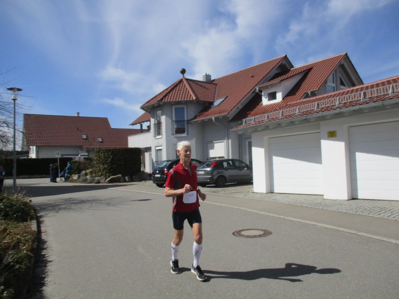 Im letzten Jahr hat es erstmals geklappt, dass ich an dieser Veranstaltung in der Nähe teilnehmen konnte. Damals war es zwischen Früh- und Nachtdienst aber auch nicht so optimal, während es dieses Jahr nach dem Nachtdienst war. So fuhr ich die knapp 25 km in 20 Minuten und parkte im Bereich der Turnhalle und dabei praktisch exakt auf Höhe von Start und Ziel. Das fing schon mal ganz gut an. In der Turnhalle holte ich im Foyer meine Startnummer. Ich hatte wieder für die Kurzstrecke über 6,5 km gemeldet. Daneben gibt es noch einen Lauf über 11 km und auf beiden Strecken ist auch Nordic Walking möglich. Die Startgebühr ist mit 7 € recht moderat. Es gab dieses Jahr noch einen Beutel dazu. Die ersten Bekannten traf ich auch schon bei dieser kleinen, aber sehr liebevoll organisierten Veranstaltung, bei der es keine Wertung nach Altersklassen gibt und auch nicht die Gesamtsieger geehrt werden, sondern vielmehr der Spaß am gemeinsamen Laufen im Vordergrund steht. Dabei gibt es dann aber eine Ergebnisliste und eine Urkunde bekommt man auch. Das Wetter meinte es diesmal mit 13° C und Sonne so richtig gut, zumal es auch kaum Wind hatte. Das waren mal richtig angenehme Bedingungen.