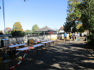 Ich bin auf diese Veranstaltung gestoßen, weil es diesmal eine Anmeldung über das Portal von abavent gibt. Da ich eh Spätdienst hatte, nahm ich mir vor daran teilzunehmen und die Zeit dafür frei zu nehmen. Da es dann am Morgen zudem früher, nämlich bereits um 7 Uhr, losging passte es gerade und ich nahm den Rest des Tages ab 14:30 Uhr frei und fuhr direkt von der Arbeit die paar Kilometer nach Warthausen, wo ich an der Turnhalle parkte. Dort gab es die Startnummern und den Handgelenktransponder für die Zeitnahme. Es wurden Strecken von 10 km und 5 km, da auch Nordic Walking, angeboten und ich entschied mich für die 5 km. Es war übrigens keine Anmeldegebühr fällig und es handelt sich um einen Spendenlauf der Firma Boehringer Ingelheim, der aber auch für Nicht-Firmenmitglieder offen ist und so kam ich noch zu einem weiteren Wettkampf. Es wurde in diesem Jahr zugunsten des Vereins Warapu gelaufen, der in der Nähe in den Sommerferien immer ein Kinderferienlager durchführt. Auf jeden Fall eine tolle Sache. Dabei gab es für jeden Teilnehmer eine entsprechende Spende. Das Wetter meinte es mit 23° C und Sonne pur fast schon wieder zu gut, aber sicher kein Anlass zum Meckern. Auch hier waren natürlich viele Bekannte am Start. Es gab ja schon mal 209 Voranmeldungen.