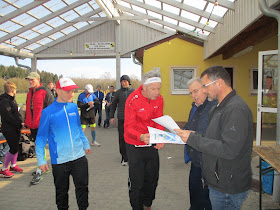 Es ging heute mal wieder nach Mittelfranken und dabei zu einer Veranstaltung, an der ich bislang ein Mal 2017 teilgenommen hatte. Den Nachtdienst bekam ich zum Glück Urlaub und gestern in Schwäbisch Gmünd hatte ich ja 5 km im Wettkampf absolviert und so doch etwas Erwartungen an den heutigen Lauf. Den sehr erfolgreiche Lauf gestern merkte ich dann aber doch etwas und zu allem Überfluss "durfte" ich noch um 5:30 Uhr die Mädels holen und so nach nicht ganz 4 Stunden Schlaf noch eine Stunde früher wach. Es ging die 150 km in 1:21 Stunde zum Sportplatz in Dürrwangen und dort gab es genug Parkmöglichkeiten. Ich holte nun meine Startnummer und für den Lauf über 10 km betrug die Startgebühr gerade mal 7 €. Beim Lauf und Walking (keine eigene Wertung) über 5 km sind es 5 € und für den Schülerlauf 2,50 €. Auch hier in Mittelfranken treffe ich natürlich immer auf einige Bekannte und das begann schon bei der Ausgabe der Startnummer. Da traf ich auch auf Jörg Behrendt und so durfte ich auf ein Foto von meinem Zieleinlauf hoffen. Das Wetter meinte es richtig gut mit 14° C und Sonne. Allerdings auch heute wieder dieser so langsam echt nervige böige Wind. Dann traf ich auf Ralf und Ina Throm, sowie Andreas Schien, die ich erst gestern traf.