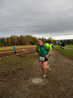 Es war heute wieder so weit und die Crosslaufserie Oberschwaben ging in die nächste Runde. Das hieß für mich auch wieder die Teilnahme an der Serienwertung und das nun schon zum 8. mal in Folge. Dabei auch 28 Rennen ohne Unterbrechung. Es gab in diesem Jahr eine Neuerung mit einem Jedermannrennen und um alle möglichen Rennen zu bestreiten sollte ich da ja schon auch starten. Nach dem sensationellen 3. Platz in der Serienwertung der AK im letzten Winter rechnete ich mir für den Hauptlauf dieses Mal eh keine Chancen aus und Doppelstarts hab ich ja nicht selten. So fuhr ich die 58 km in 42 Minuten und parkte bei der Turnhalle. Die alte Halle gibt es ja nicht mehr. Ich holte nun in der Turnhalle meine Startnummern und für die Serienläufer galt diese wieder für alle Rennen und war gelb. Die Einzelgebühr beim Hauptlauf betrug 10 € und für die Serie von vier Läufen 30 €. Beim neuen Jedermannlauf beträgt die Gebühr 6 €, wobei es hier keine Serienwertung gibt. Bei den Kindern betragen die Gebühren 3 € bzw. 9 € und bei den Jugendlichen 4 € bzw. 12 €. Alleine die Tatsache, dass man bei dieser Serie so viele Bekannte trifft macht sie zu etwas Besonderem. Ich traf auch mal wieder auf Moderator Achim Linder. Das Wetter meinte es doch noch recht gut. Bei 9° C war es vor allem trocken und leicht bewölkt. Es gab auch wieder einen schönen Blick zu den Alpen und der Wind war zumindest nicht so stark wie bei mir daheim. Da wäre es echt übel gewesen. Da sah es im letzten Jahr bei dem Regen und vor zwei Jahren im Schnee schon anders aus.