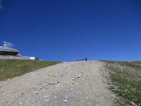 Nun konnte ich erst mal die sensationelle Aussicht genießen. Ich musste ja auch mal kurz durchatmen und schön, dass ich noch jemand traf, der Fotos von mir machte. Hier oben war es aber doch recht zugig und da ich verschwitzt war, blieb ich nicht zu lange. Ich entschloss unten an der Bergstation zu trinken.