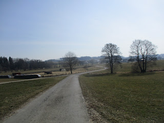 Es stand in diesem Jahr mein 34. Wettkampf an. Nun hatte es rund 20 Minuten später bereits 5° C. Da es endlich mal kaum Wind hatte, fühlten sich diese auch tatsächlich relativ angenehm an. So verzichtete ich auf die Jacke, da ich eh das Langarm-Funktionsshirt dabei hatte. Es wäre dann auch mit der kurzen anstatt der dreiviertellangen Hose gegangen und mit einem Stirnband, aber bei den 2° C bei der Abfahrt und dem zuletzt so kalten Wind hatte ich gleich gar keines mitgenommen. Bei den Schuhen wie gewohnt die Asics. Dann war ich mal gespannt, wie es sich zu Beginn anfühlt. Es ging auf jeden Fall deutlich besser als zuletzt und folglich auch ein besseres Tempo. An dem Tag auch nur ein geringer Gegenwind. Da konnte ich dann auch beschleunigen und hoffte auf einen ersten Kilometer in 4.25 min. Das schaffte ich dann auch exakt und zwar deutlich ausbaufähig, aber doch auch viel schneller als bei den letzten Rennen. An der Bahnlinie entlang versuchte einigermaßen schnell zu laufen und doch die Lockerheit nicht zu verlieren. Es passte ganz gut und in Richtung Goppertshofen wollte ich nun bei dem zum Glück nur leichten Gegenwind mehr Kraft einzusetzen und nach der Wende nochmal zu beschleunigen. Der zweite Kilometer ließ sich mit 4.48 min doch sehen, vor allem wenn ich an letzte Woche Freitag und diesen Montag denke. Es ging nach gut 100 m links weg und Richtung Ochsenhausen. Ich machte diesmal während dem Lauf doch einige Bilder mehr als zuletzt und fühlte mich doch recht locker, was mich angesichts des langen und durchaus anspruchsvollen Trails am Vortag überraschte. Dabei lief es zuletzt gerade nach solchen Trails tendenziell nicht schlecht. Nach dem ersten Drittel zeigte die Uhr dann 11:43 min. Ob da sogar eine Zeit unter 36 Minuten drin ist? Das war aber noch ein langer Weg und ursprünglich wäre ich mit allem unter 37.30 min, also einem Schnitt unter 5.00 min/km zufrieden gewesen. Mit der Pace war ich zuletzt auf dem etwas schwereren Abschnitt auch unterwegs. Ich versuchte diesen noch etwas zu steigern und kam an die kürzlich eingerichtete Baustelle. Den dritten Kilometer dann in 4.57 min. Damit war ich durchaus zufrieden. Es ging noch die gut 300 m bis zur zweiten Wende und dann zurück. Da war nach weiteren 500 m die Pace bei 4.48 min/km. Damit konnte ich absolut leben. Nochmal über den kurzen Kiesweg an der Ausweichstelle und zur Halbzeit zeigte die Uhr 17.48 min. Noch war eine Zeit unter 36 Minuten drin, aber da durfte ich nicht nachlassen und eine Steigerung dürfte eh schwer fallen.