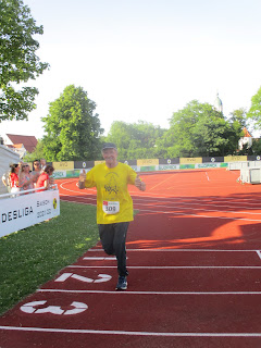 Leider hatte ich nun etwas Zeitdruck. Ich beließ es bei einem Kilometer Auslaufen und dann noch mit Jonas Haiß ein interessantes Gespräch geführt. Der verfolgt meinen Blogg seit 10 Jahren beim Berglauf in Zwiefalten. Es war schön. dass es mal wieder eine Siegerehrung gab, was zuletzt nicht immer der Fall war, dabei auch über die 5 km mit AK-Ehrung. So kam ich nun auch noch zu einem Pokal von meinem "Heimrennen". Ich musste dann aber zügig zum Dienst und konnte die weiteren Ehrungen nicht verfolgen und ein gemütlicher Ausklang bei dem Wetter hätte schon was gehabt. Es war auf jeden Fall eine rundum gelungene Veranstaltung. Danke noch an Lina für die Bilder.