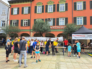 Natürlich nehme ich gerne an Premieren-Veranstaltungen teil, vor allem wenn dann auch noch das Erreichen mit den ÖPNV gut ist. Da ich an dem Tag meinen dritten freien Tag hatte stand einer Teilnahme praktisch nichts mehr im Wege. Durch den späten Start kam für mich nur der Lauf über 5 km in Frage, denn sonst wäre es dann doch recht spät geworden. Ich hatte mich noch am 30.05. angmeldet, da es zu diesem Stichtag noch die günstigsten Gebühren gab. Dabei finde ich 16 € über 5 km schon etwas heftig und 20 € über 10 km sind auch nicht gerade wenig.Danach waren es für Voranmeldungen noch 2 € mehr und für Nachmelder kamen nochmals Gebühren drauf. Am letzten Samstag lief es beim Wettkampf in Reute auf flachen 5 km und nur Asphalt wieder deutlich besser und in dieser Woche passte auch das Training. Allerdings am Montag nicht den geplanten langen Lauf, aber ein schöner Trail in Blaubeuren und so auch gut über 1000 Hm in dieser Woche. Die letzten Tage lief es super und zudem konnte ich mich auch mal besser erholen. Da musste nur noch das Wetter mitspielen und die Bahn. Ich konnte direkt von Laupheim nach Stuttgart fahren und dort großzügig Zeit für den Umstieg nach Ludwigsburg und dorthin nur 9 Minuten. Die erste Stunde bis Göppingen war aber wegen defekter Klimaanlage fast ein wenig Horror. Danach passte es zum Glück wieder. Die Busse zum Rathaus fuhren dann ab 16 Uhr eine Umleitung und ich war zwar kurz zuvor am Bus, aber es reichte nicht mehr.